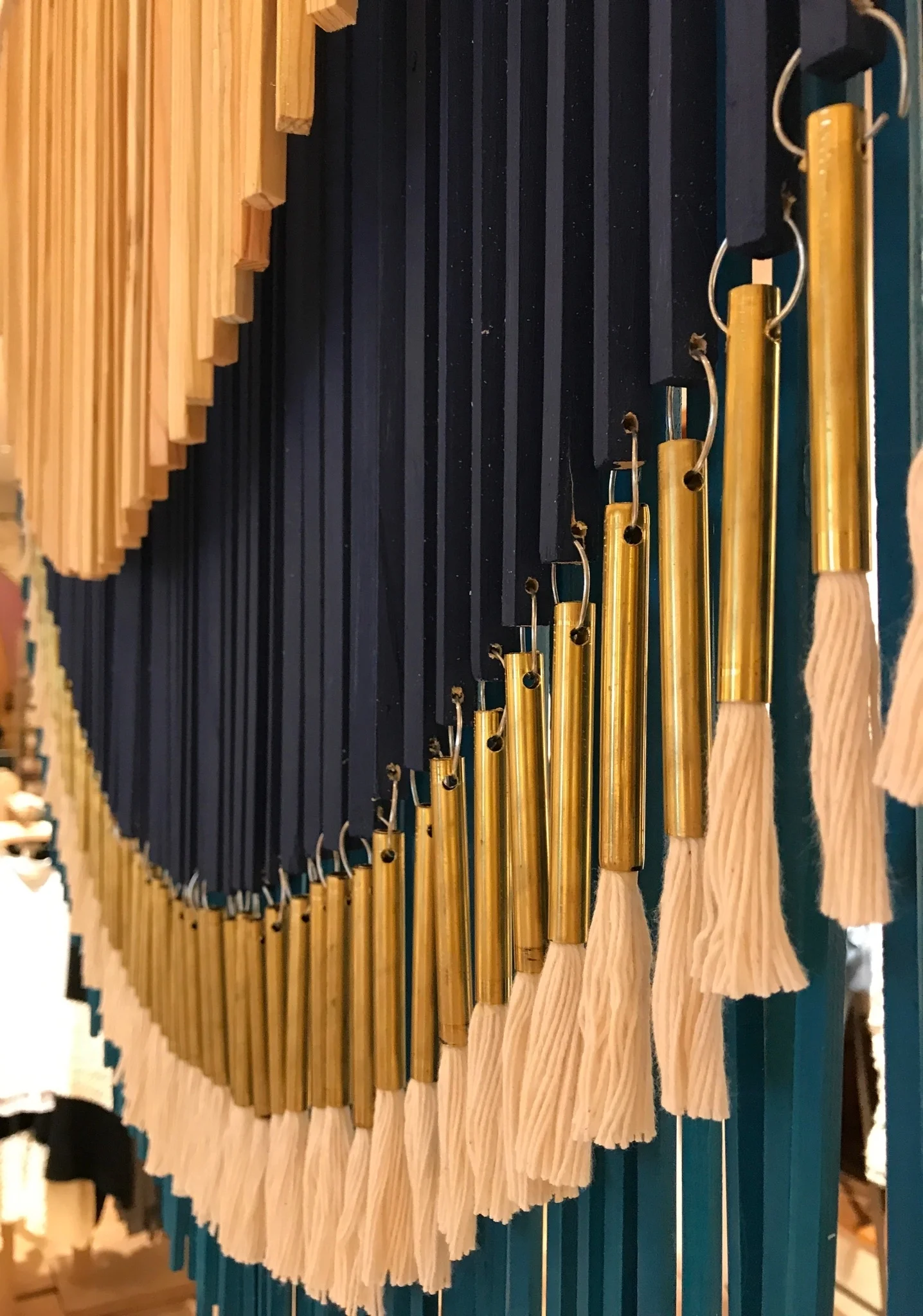 Anthropologie. Austin, Tx. Fall 2017. Geometric hanging art installation made of wooden and brass dowels.