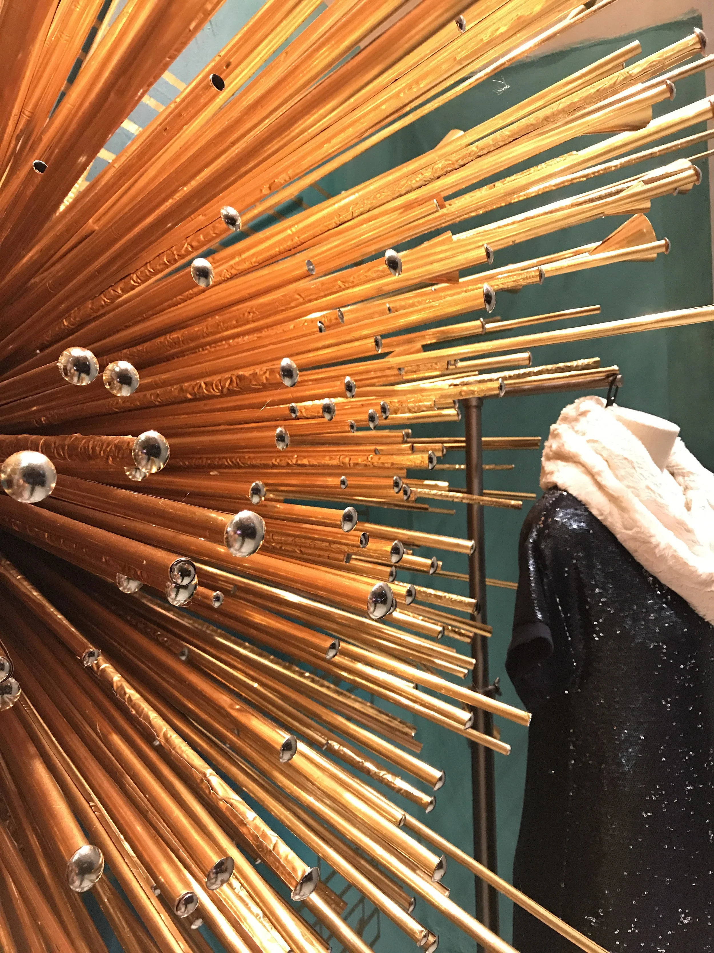 Anthropologie. Austin, Tx. Holiday 2017. SoundBurst inspired by music. Tubes creating the burst were made from rolled metal foil.